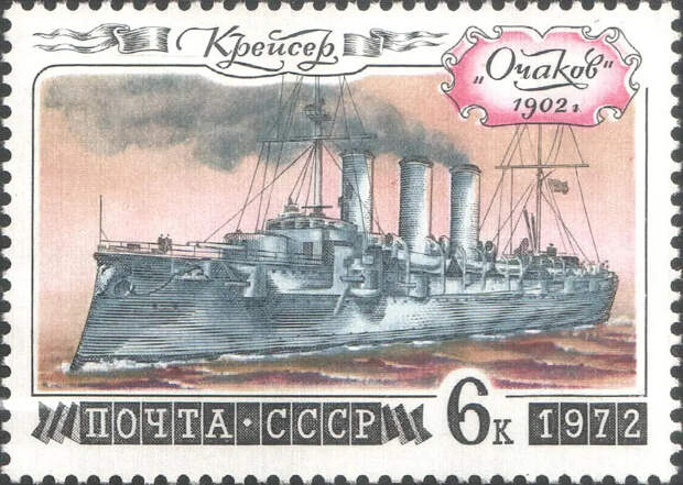 Советская марка 1972 года. Экипаж крейсера «Очаков» был наиболее революционным на флоте. Корабль после событий был переименован в «Кагул»