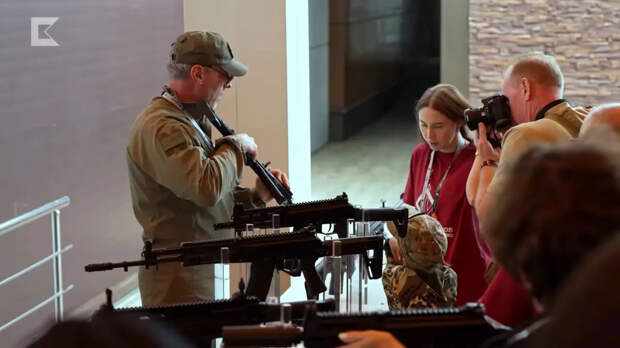 Главный конструктор концерна «Калашников» Сергей Уржумцев демонстрирует новые образцы оружия