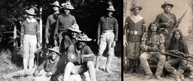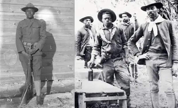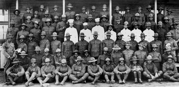 Негры служили в армии США во время Гражданской войны и продолжали служить после нее. Многие из этих солдат сражались в испано-американской и филиппино-американской войнах. И хотя жалование было низким, всего 13 долларов в месяц, многие чернокожие американцы завербовались в армию, потому что могли зарабатывать больше, да и относились к ним с большим достоинством, чем они у них было в гражданской жизни. Источник: Библиотека Конгресса США