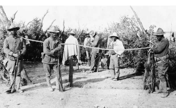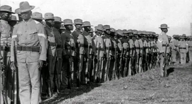 «Солдаты Буффало» участвовали в карательной экспедиции в Мексику, которую правительство Соединенных Штатов предприняло в 1916 году против лидера мексиканской революции Панчо Вильи, контролировавшего большую часть северо-восточной Мексики в 1914 и 1915 годах. Началось с того, что Панчо Вилья совершил налет на небольшой американский город Колумбус, штат Нью-Мексико, в результате чего погибло шестнадцать американцев и восемь гражданских лиц. В ответ президент Вильсон отдал приказ о карательном рейде в Мексику с целью захвата Панчо Вильи. Панчо Вильи так и не захватили, но «Солдаты Буффало» были размещены в Мексике вдоль всей юго-западной границы для защиты от бандитов и поддержания «законов нейтралитета» США. Источник: Библиотека Конгресса США