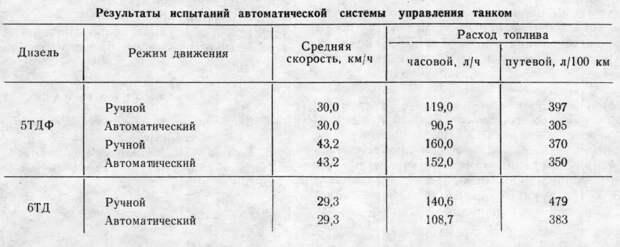 Меньшая, но всё же заметная разница в расходе топлива была выяснена и при «покатушках» на средних скоростях более 40 километров в час — там, где различия между автоматическим и ручным переключением передач, казалось бы, должны стираться. Например, у движка харьковской «шестьдесятчетвёрки» 5ТДФ часовой расход топлива снизился на 8 литров, а путевой на 100 километров — на 20 литров.