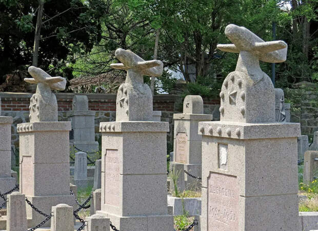 Надгробия над могилами лётчиков можно узнать по самолётам:
