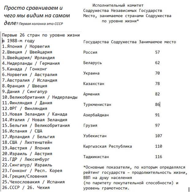 Так как ООН только с 1988 года начала давать сведения о месте страны по уровню жизни среди стран мира, то возьмём эти данные. Хотя страну СССР уже начали валить но других официальных данных нет.