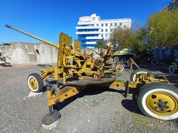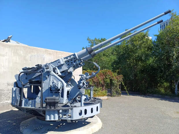 Спаренная 57-мм зенитная установка СМ-24-ЗИФ в экспозиции Музея «Владивостокская крепость»