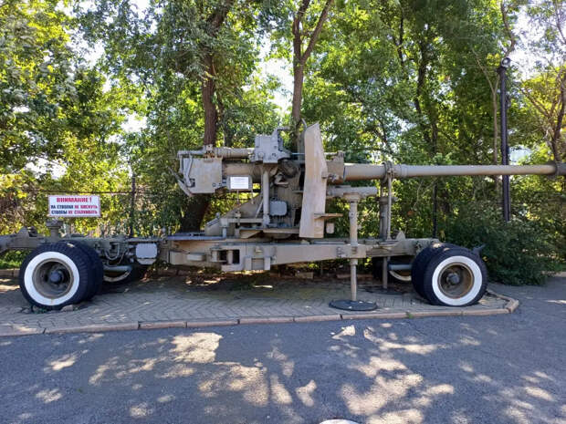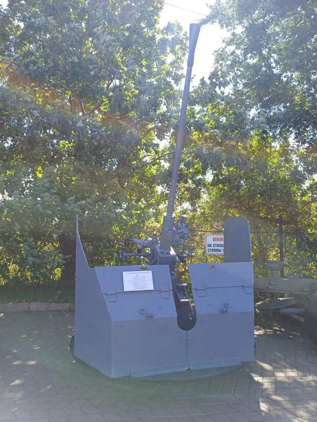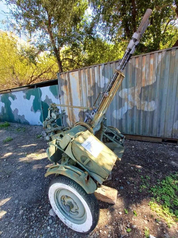 Судя по смазанным подвижным частям, деталям и ухоженному внешнему виду, дееспособной является 57-мм автоматическая зенитная пушка АЗП-57 (С-60).