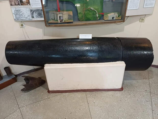 Ствол 229-мм орудия обнаруженный в ходе реставрации Безымянной батареи
