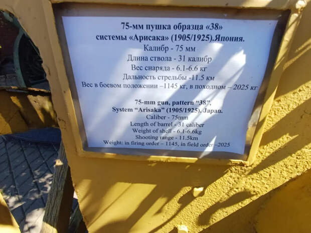 К сожалению, в пояснительной табличке, прикреплённой к щиту орудия, ничего не сказано про его боевую историю и то, как оно оказалось во Владивостоке.