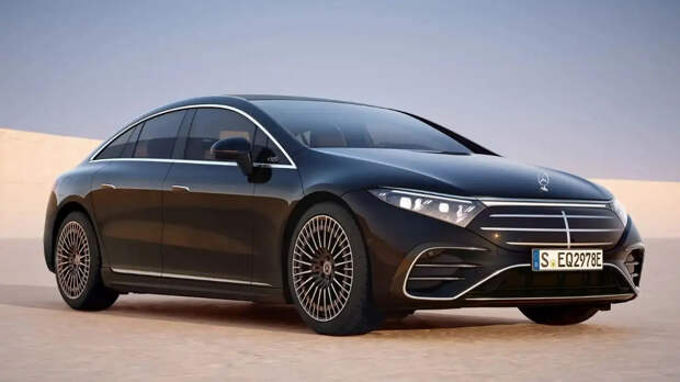 EQS 580, флагман Mercedes-Benz в электрическом варианте. Длина кузова 5,32 метра, четыре ведущих, разгон до 100 км/час за 4,4 секунды. А вот скорость ограничена до 210 км/час. Дальность на полной зарядке 790 км (к сожалению, брехня).