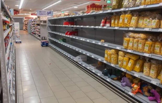 Пандемия. Полупустые полки магазина во Франкфурте на Майне в марте 2020 года