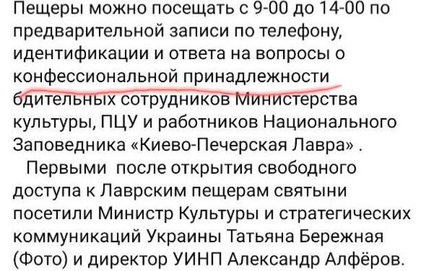 А еще заповедник известил, что станет наконец-то пускать в Лавру и Пещеры экскурсантов. Но, во-первых, некогда бесплатное паломничество теперь будет стоить немалых денег. А во-вторых, прежде чем попасть туда, надо записаться и сообщить свои данные: ФИО, ИНН, адрес и – самое главное! – конфессиональную принадлежность.