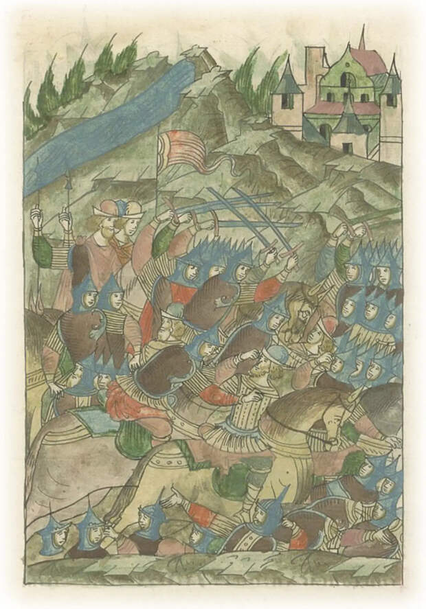 Наступление московских войск на Казань в 1524 г. Миниатюра из Лицевого свода