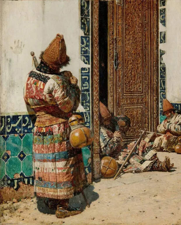 Картина В. Верещагина «У дверей мечети»; очень выразительное полотно, которое вполне можно было бы назвать «Спящий восток»