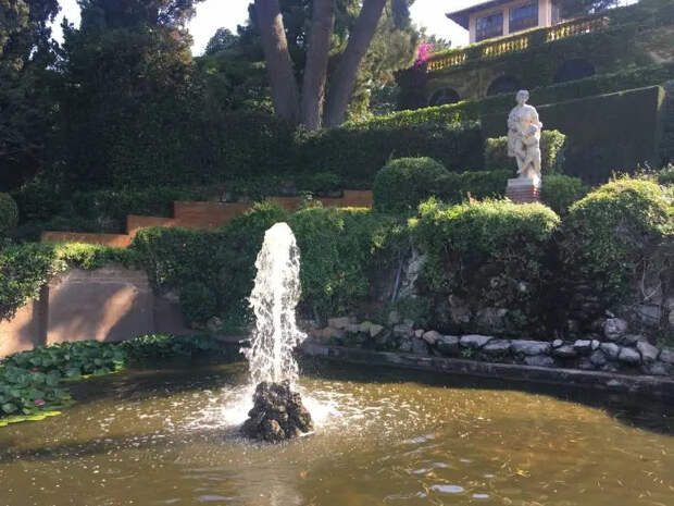 А это один из парковых фонтанов. А ниже парка на берегу в уютной бухте, опять-таки, пляж...