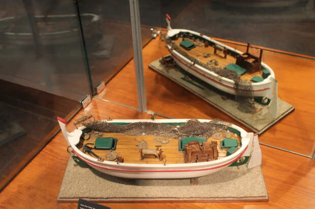 В частности здесь очень много моделей судов с латинскими косыми парусами, являвшимися характерной чертой парусников Средиземноморья