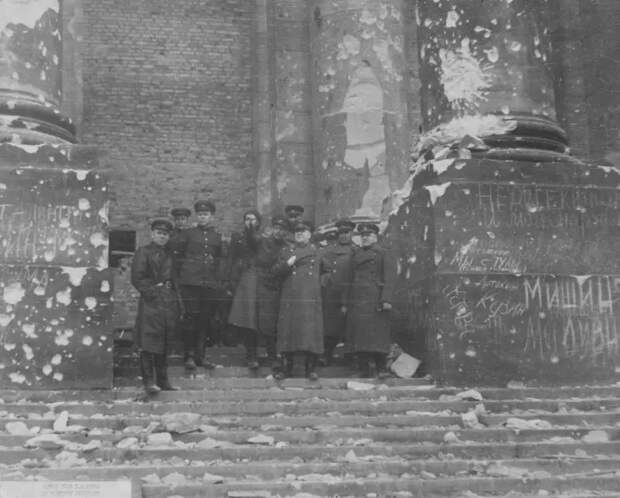 Маршал Жуков c офицерами на ступенях Рейхстага