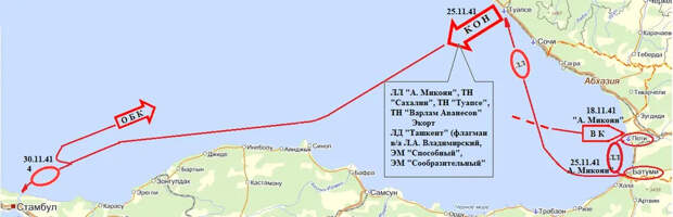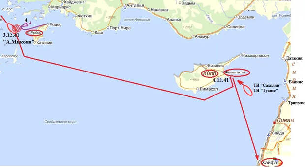 Переход «А. Микояна», «Сахалина», «Туапсе», «Варлама Аванесова» в Черном и Средиземном морях