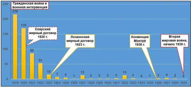 Количество иностранных военных кораблей, прошедших через Черноморские проливы в 1919-1939 гг.