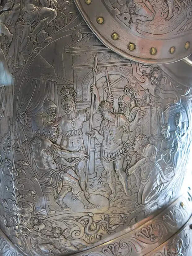 Кто делал эти доспехи? Вероятнее всего, это были два миланских оружейника: Филиппо (1510–1579) и Франческо Негроли (1522–1600), которые специализировались как раз на такой технике оформления доспехов, и этот доспех — особенно яркий тому пример.