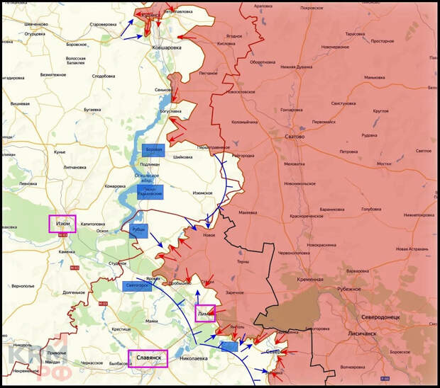 Сватово – Купянск. На Богуславском направлении российские подразделения продвинулись вдоль дороги Богуславка – Боровая и вышли к Новоплатоновке, частично окружив группы противника. На Купянском направлении ВСУ всеми силами пытаются деблокировать левый берег Оскола, но их контратаки в районах Юбилейного, Кондрашовки и западных окраин города не дают успехов и лишь расширяют «серую зону». Подтверждено продвижение российской техники к Петропавловке и закрепление на новом рубеже до 1,5 км. В районе Боровой – продвижение до 5 км и выход на ближние подступы к посёлку, пишет KRM РФ.
