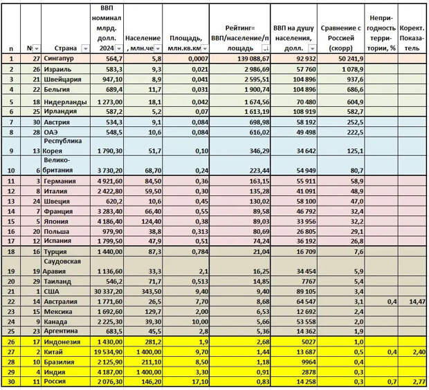 Попробуем сделать расчеты по предложенной модели, взяв за основу страны из ТОП-30 мирового ВВП.