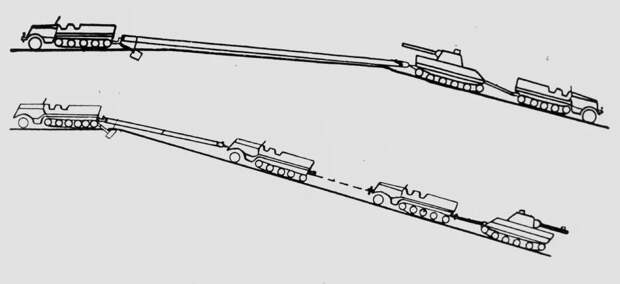 Механизация ремонтно-эвакуационных команд казалась достаточнойЕсли танк не мог освободиться самостоятельно (например, с помощью балки для вытаскивания из кювета или S-образного крюка), его экипаж и ремонтная группа первого эшелона должны были подготовить его к эвакуации. Хорошо, если танк был управляемым и с исправной тормозной системой, или хотя бы подвижным. Разные повреждения требовали разных приготовлений.