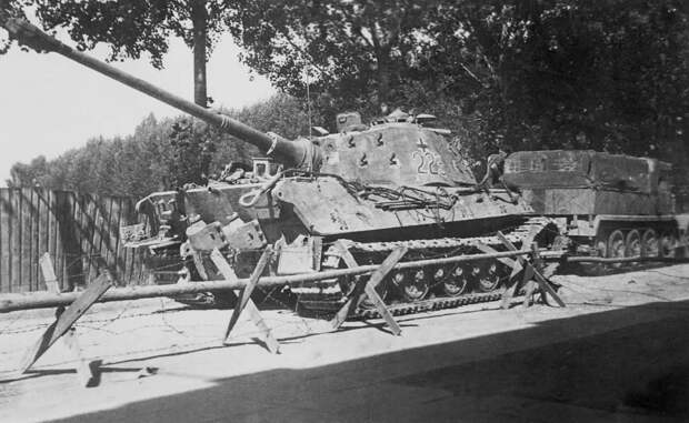 Для эвакуации «Тигра» взводу необходимо иметь не менее шести тягачей, из которых один оснащён 6-тонным краном. Поскольку 502-й танковый батальон был разделён на две части с одним ремонтным взводом в каждой, наш ремонтный взвод имел только три 18-тонных тягача, из которых один был неисправен из-за повреждения трансмиссии. Поэтому буксирование Pz.Kpfw.VI было очень затруднено. Жизненно важно, чтобы каждая отдельная рота «Тигров» была оснащена шестью тягачами. VII. Войска в полевых условиях доводят до ума устройства сцепки как на танках, так и на 18-тонных тягачах. Тем не менее, необходимо разработать более надёжное буксирное устройство в тылу и в такой форме, чтобы оно поставлялось напрямую с завода-производителя вместе с каждым танком. VIII.