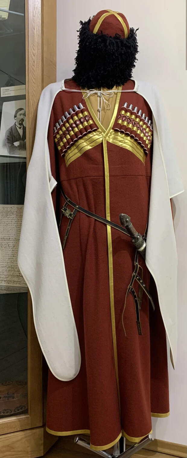 Очень важной принадлежностью кавказского национального костюма являлись бурка и папаха. Культурный центр им. Л.Н. Толстого, Железноводск. Фотография автора