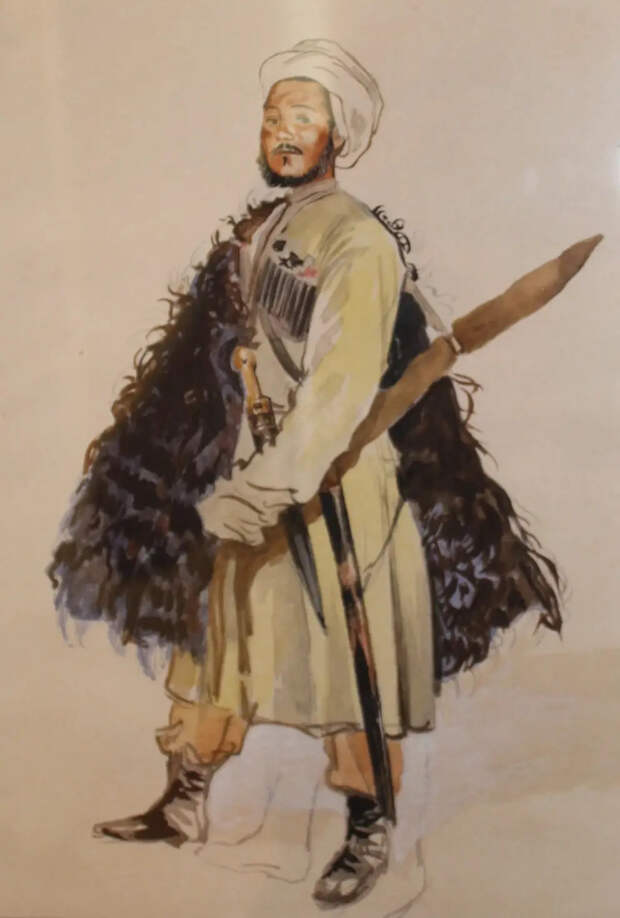 Казак в бурке. С акварели Г.Г. Гагарина. Государственный музей-заповедник М.Ю.Лермонтова в Пятигорске. Фотография автора