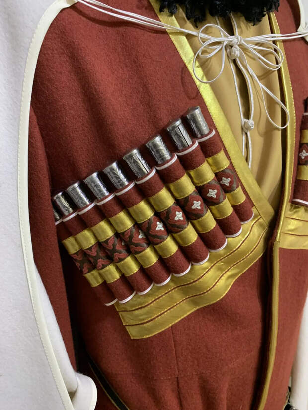 Газыри на черкеске казака Терского казачьего войска. Культурный центр им. Л.Н. Толстого, Железноводск. Фотография автора
