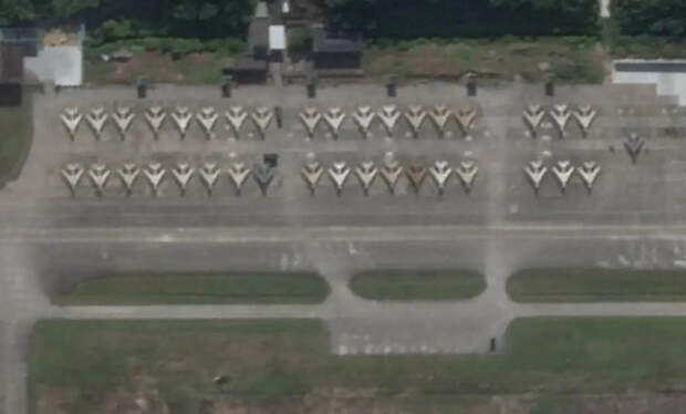 Авиабаза Ляньчэн (пров. Фуцзянь) в 2013 г. Зарубежные специалисты предполагали, что на снимке изображены БПЛА на базе J-6. Фото Planet Labs