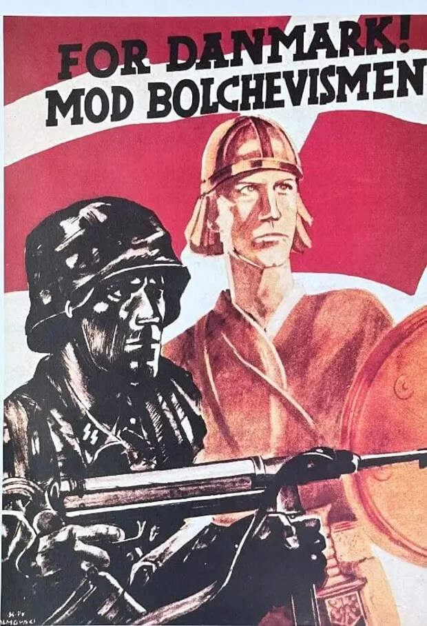 Датский плакат «За Данию! Против большевизма! Вступай в ряды запасного командования СС «Данмарк». Август 1941. Erich Palmowski (1912-2006)