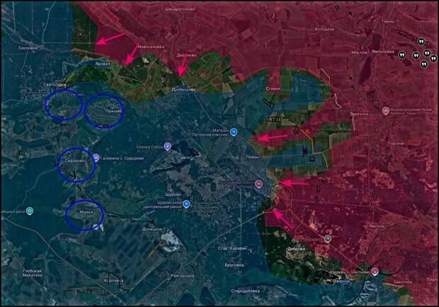 Северо-западнее Красного Лимана фиксируются попытки расширения зоны продвижения наших войск. Подразделения действуют малыми группами, продвигаются через поля и лесополосы, используя естественные укрытия. В районах Дробышево и Яровой продолжаются встречные бои. Формируется серая зона, при этом участок находится под нашим огневым контролем. Противник активно использует высоты в районе Святогорска и Пришиба. Основной упор – БПЛА и артиллерия. Передвижения наших подразделений часто просматриваются, поэтому маневрировать сложно.