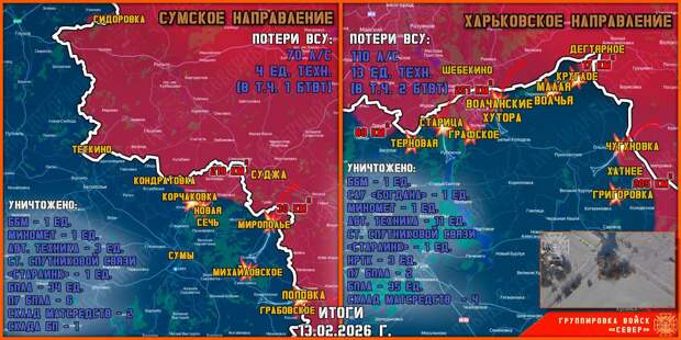 Сводка Министерства обороны Российской Федерации о ходе проведения специальной военной операции по состоянию на 14 февраля 2026 г.
