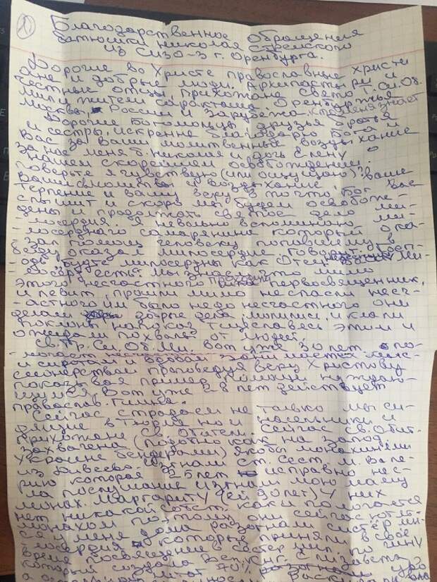 И вот в подтверждение некоторых моих выводов на мою почту пришло письмо с неизвестного е–мейла с Обращением о. Николая, которое он смог передать из камеры СИЗО №3 Оренбурга. Почерк Николая Стремского аутентичен, так же как и лексика.