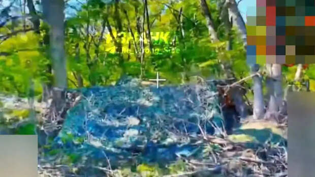 Замаскированная позиция украинской РСЗО, съёмка с атакующего БПЛА