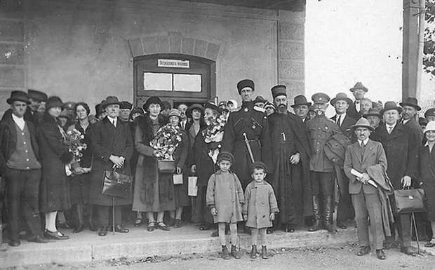 Врангель и русские эмигранты на вокзале в Сремски-Карловцы