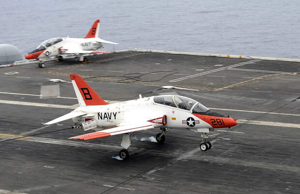 Учебно-боевые самолёты T-45C на палубе авианосца. Фото Минобороны США