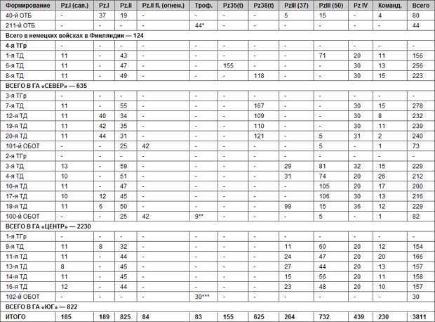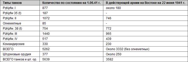 На самом деле количество бронетехники в вермахте, выделенной для кампании против СССР, на 22 июня давно известно, и оно несколько больше, чем у Мюллера-Гиллебрандта [2]: