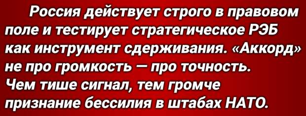 Брюссель сочиняет протесты, Москва настраивает частоты. «Аккорд» — инструмент тишины, а не шума. Там, где раньше звучали команды, теперь возникают провалы связи. Испытания не демонстрируются — они калибруют. И каждый импульс отмечен секундомером аналитиков НАТО.
