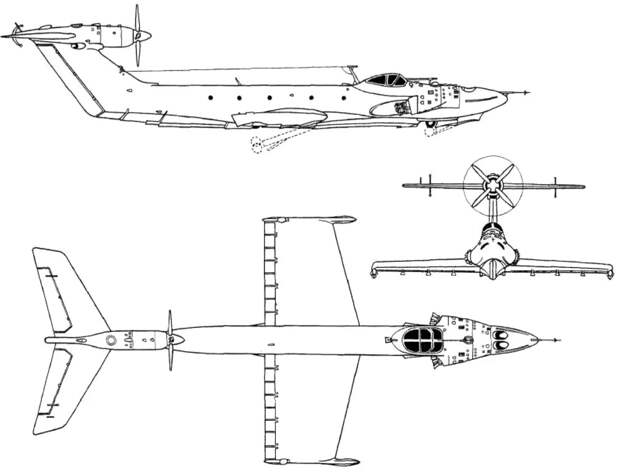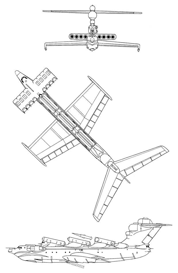 Силовая установка состояла из двух стартово-маршевых турбореактивных двигателей НК-8-4К, расположенных в носовой части, и маршевого турбовинтового двигателя НК-12МК, расположенного на хвостовом оперении. Эти двигатели являются морскими модификациями серийных двигателей самолетов Ту-154, Ил-62 и Ту-95.