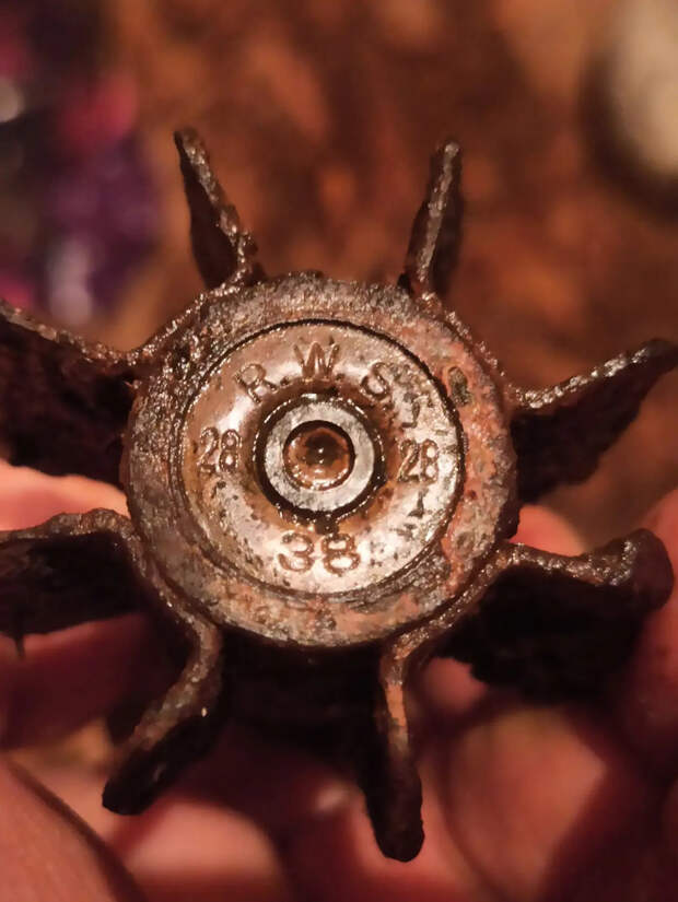 50-мм самодельная агитационная мина, найденная поисковыми отрядами в раскопе
