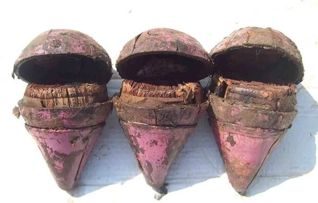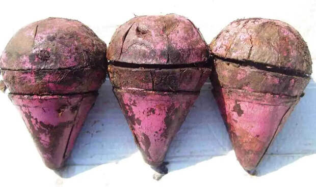Три немецких агитационных бомбы-бурака с листовками, хорошо сохранившиеся со времён Второй мировой войны