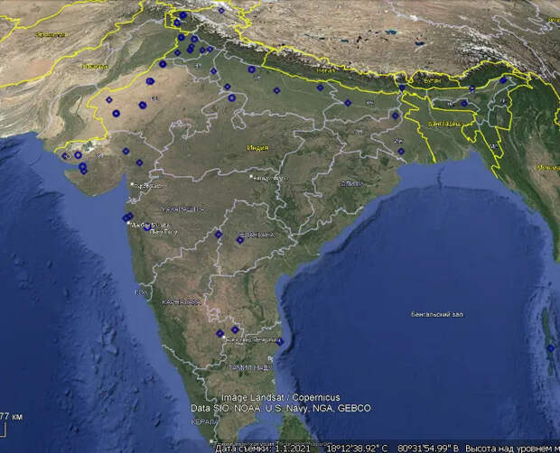 Спутниковый снимок Google Earth: РЛС Swordfish и Super Swordfish в горной местности в штате Раджастхан