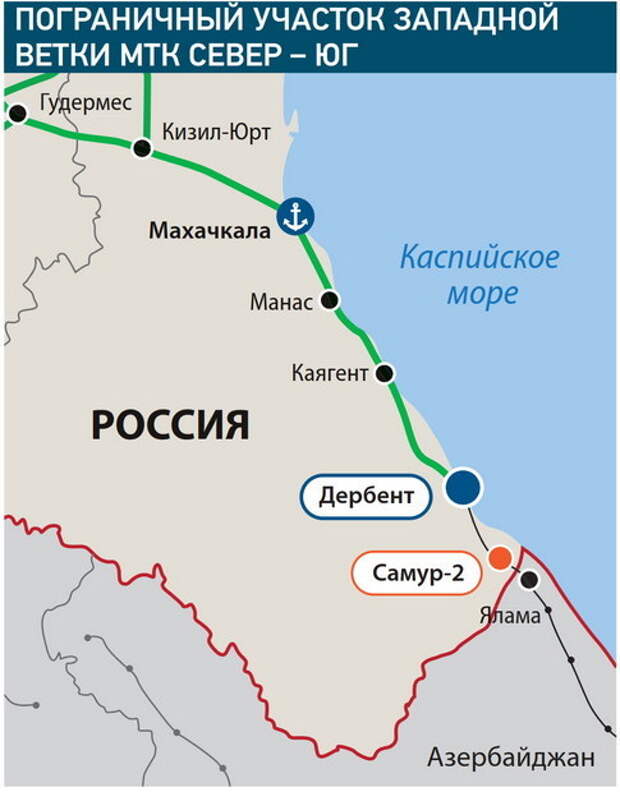 Плюс к тому уже в ближайшие годы увеличится провозная способность расположенного примерно в 25 км южнее Дербента ж/д участка Самур-Ялама между РФ и Азербайджаном. Ведущееся с 2023 г. строительство станции «Самур-II» вблизи российско-азербайджанской границы запланировано завершить до 2030 года, об этом сообщил вице-премьер правительства Дагестана Ризван Газимагомедов, отметив, что это «будет комплексный приграничный ж/д узел».